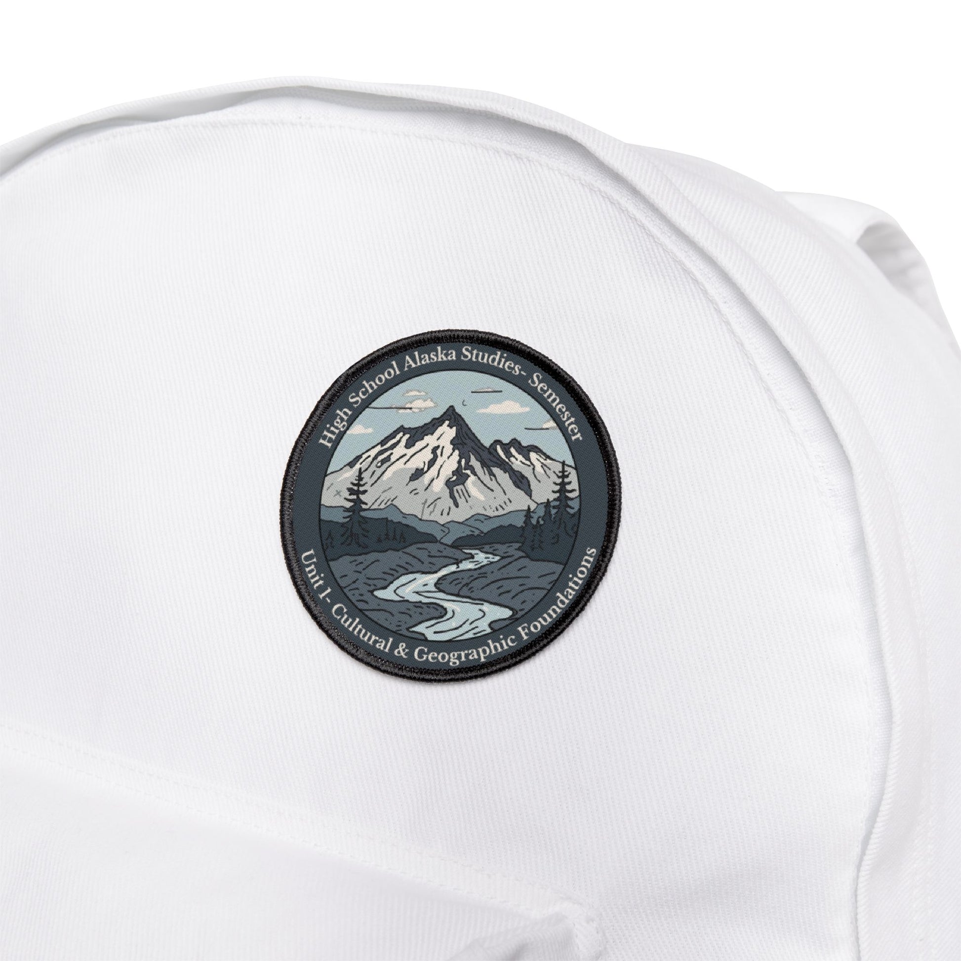 This field-style badge represents completion of Unit 1: Cultural & Geographic Foundations in the High School Alaska Studies semester course.